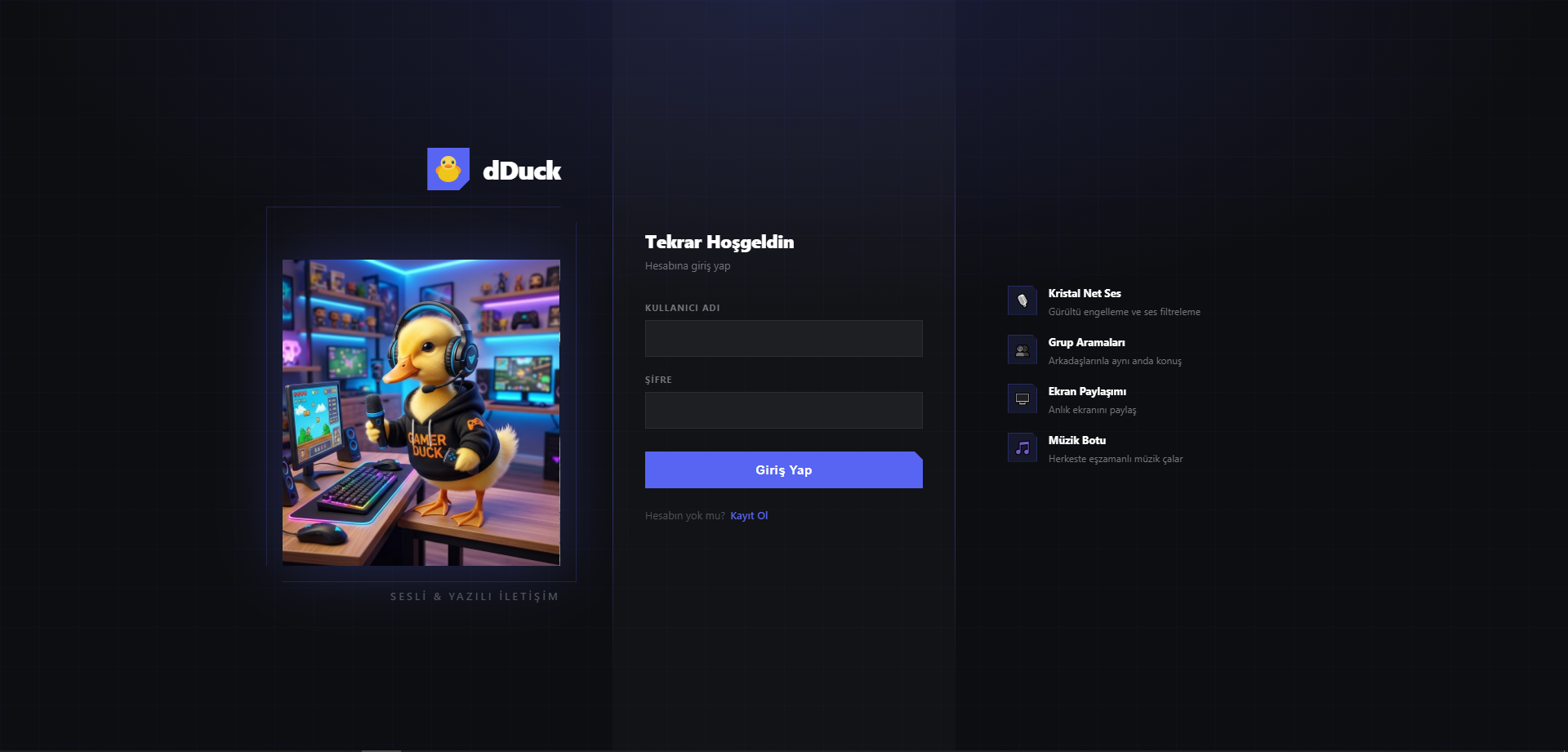 Tam da bu sebeple şimdilik yalnızca web tabanlı olmasını istedik. Tabii web tabanlı olmasının getirdiği dezavantajlar da (bas konuş olmaması gibi.) var fakat en azından bir yerden başlamak gerekiyordu. Öncelikle ses kanallarıyla başladık. Süreç tahmin ettiğimizden de güzel sonuçlandı ve çok net ses kayıtları almayı başardık. Sonrasında ciddi bir mesai ile birlikte çeşitli fonksiyonlar ekledik. Susturma, ekran paylaşma, kamera paylaşma, görüntülü konuşma, sunucu oluşturma, grup konuşması oluşturma gibi fonksiyonlar bunlar.